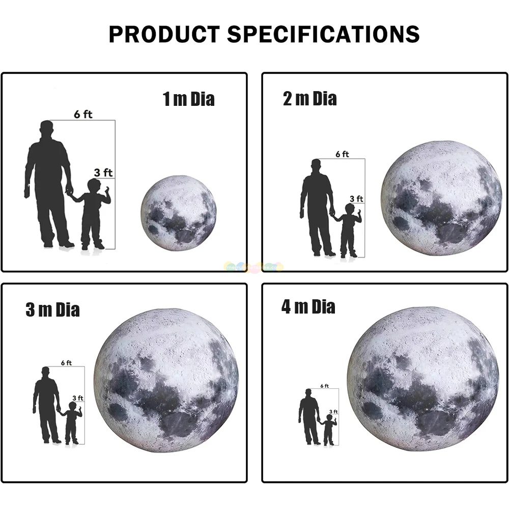 - With sizes ranging from 1m/3.28ft to 3m/9.84ft in diameter, you can choose the perfect moon balloon to fit your space and meet your needs.