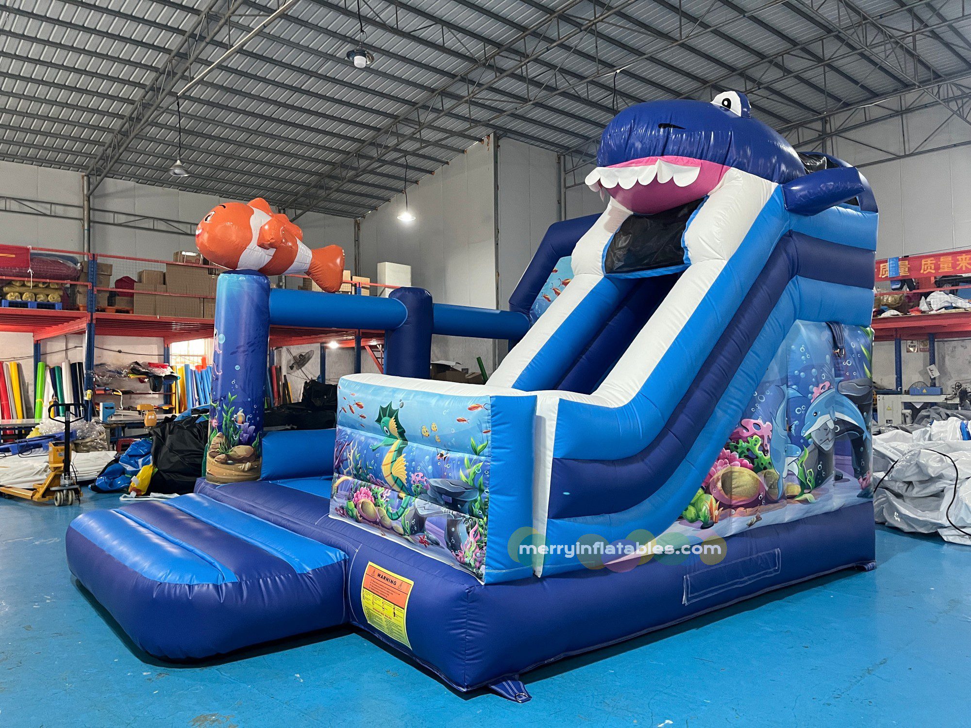 Large 3D shark entrance with open mouth slide