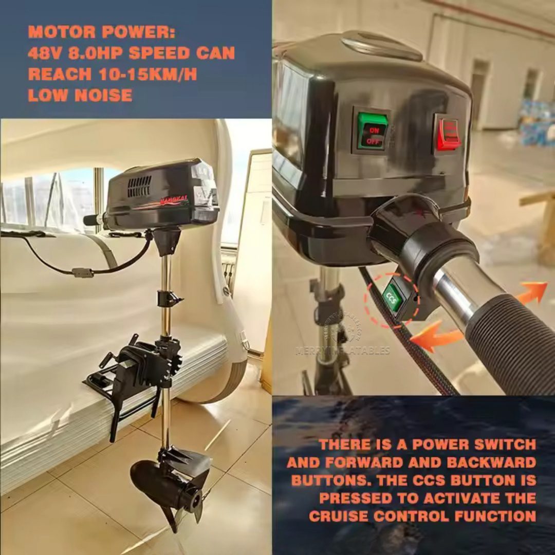 It is CE ,EN14960 certified and can be powered by any motor up to 10 HP. We suggest combining it with the ePropulsion Spirit 1.0 Plus 1kW electric motor, which comes standard with a battery and can easily be connected to a solar panel due to its exceptional efficiency.